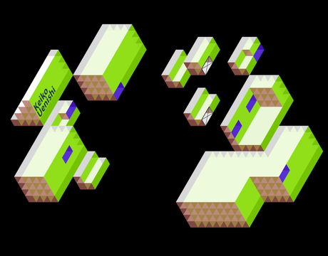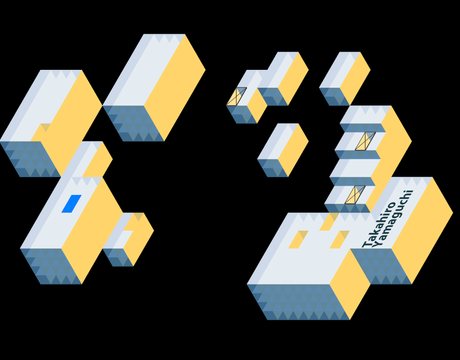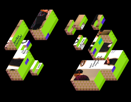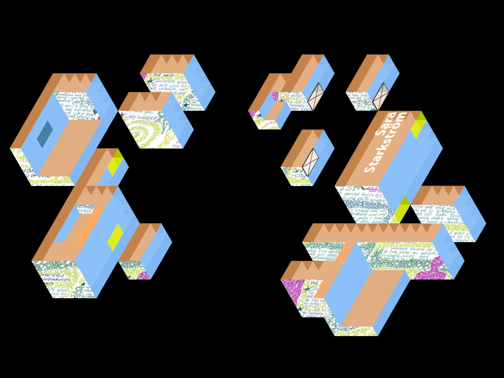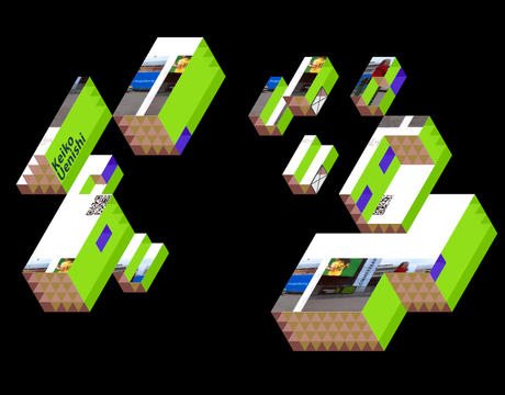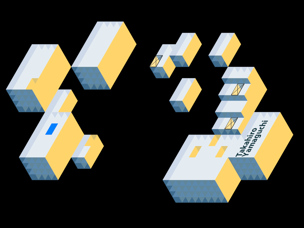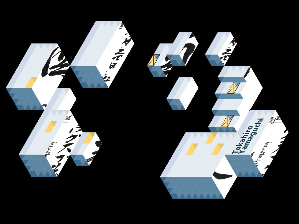 The sculptures consisted of 'flattend' cubes that were carefully calculated and created specifically for that room. By placing these sculptures just right a projection surface was made that created the optical illusion of a true isometric view.