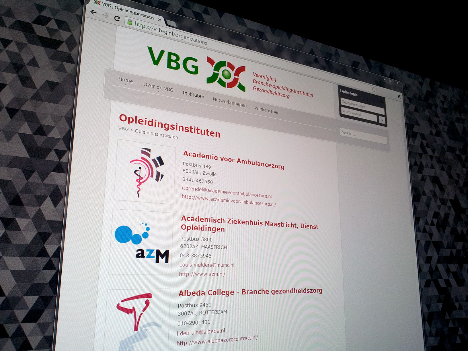 The Vereniging Branche-Opleidingsinstituten Gezondheidszorg (VBG) commissioned a major update/rebuild of their website.